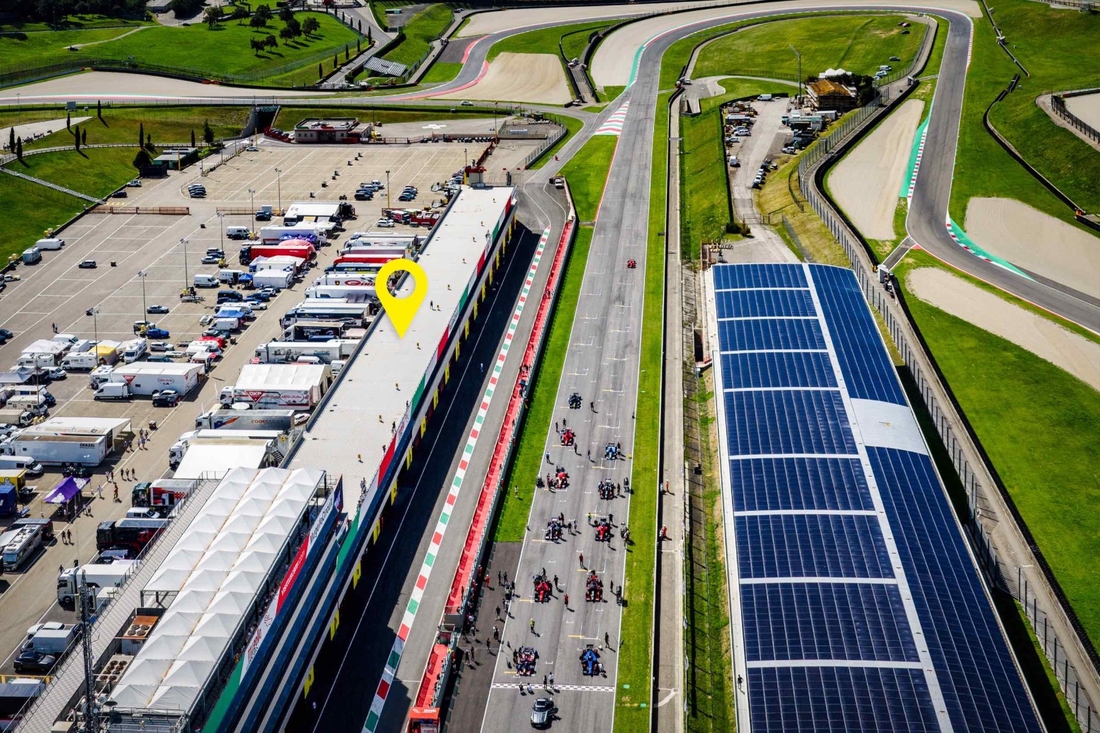 Location per spot pubblicitari e shots fotografici, è uno spazio che puo’ anche essere coperto, personalizzato ed arredato di tutto punto per la creazione di eventi: è questo e molto altro la lunga terrazza che sovrasta i box davanti alla linea del traguardo e che offre un vasto sguardo d’insieme su tutto il circuito.